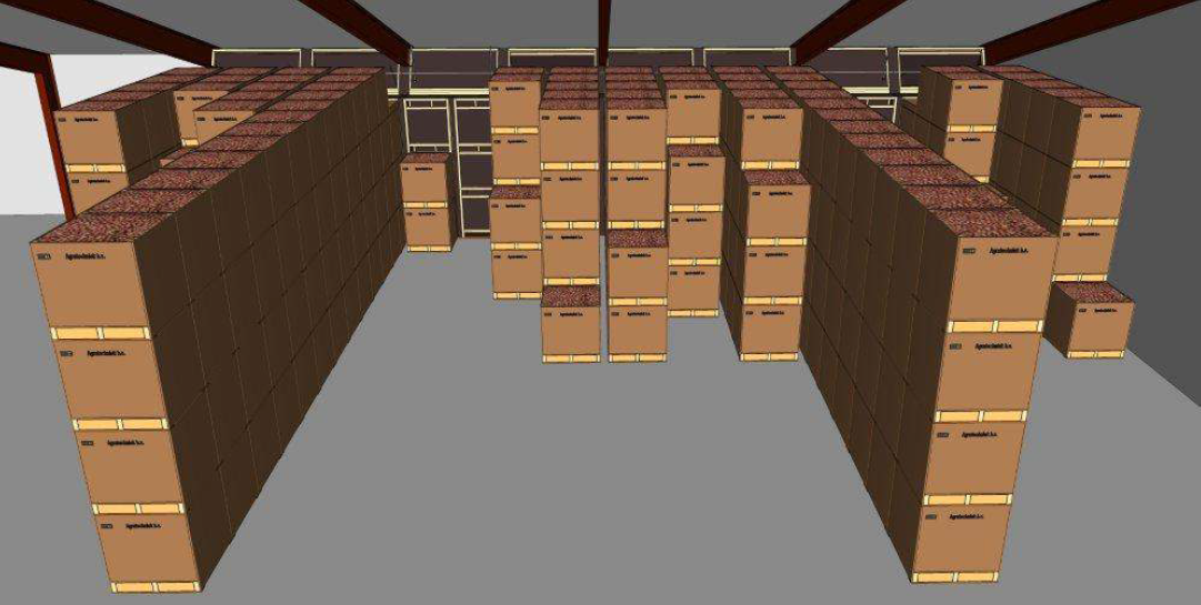 - Via de luchtuitlaten wordt de lucht in pallets van elke kistlaag geblazen