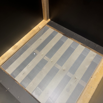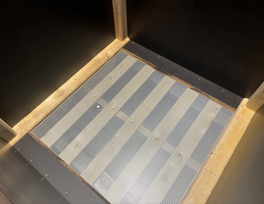 Links en rechts zijn de openingen zichtbaar. Dit zijn de luchtuitlaten voor de kisten eronder.