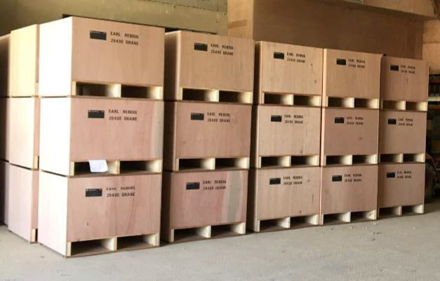 De kisten worden voor de drooginstallatie geplaatst, zo hoog als past.