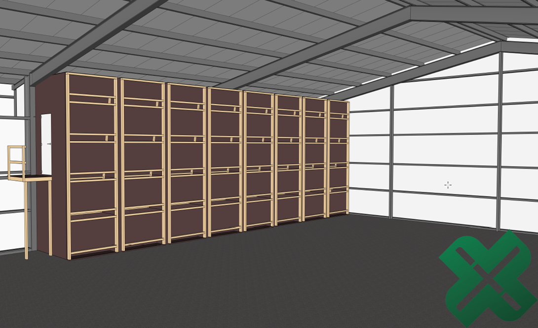 Bij deze klant wordt de hoogte van de schuur maximaal gebruikt dankzij 2 doorstroompallets.