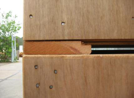 Zo ontstaat tussen de kistlagen de luchtuitlaat waar de lucht uit de onderliggende kist kan ontsnappen.