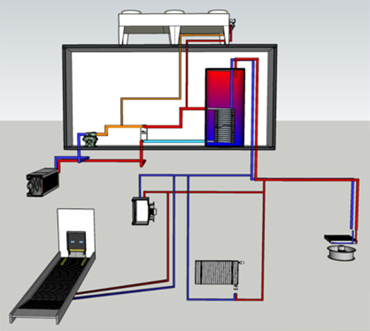 Wanneer de vrijgekomen energie niet (volledig) nodig is om te drogen of te bewaren, kan het water bij andere apparatuur worden aangeboden. Zoals: Vloerverwarming, dokshelter, kantoren en overige ruimtes.