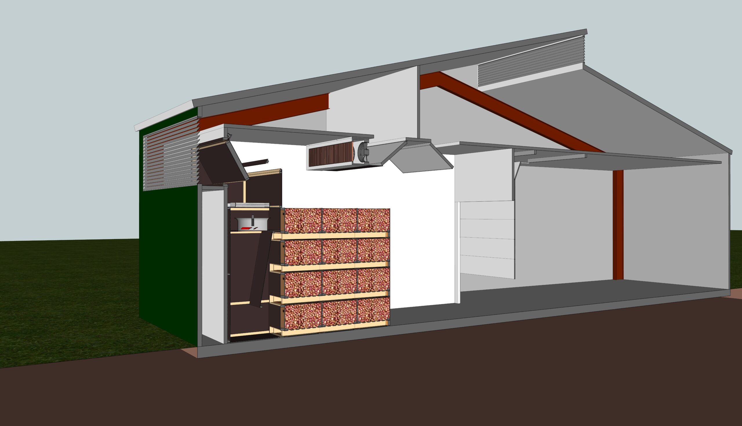 Geconditioneerd drogen geschiedt met gedroogde lucht. Daarom worden de kisten in een geïsoleerde ruimte geplaatst.