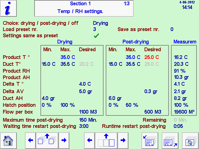 Agratechniek has developed unique ABC software for every type of drying system. This software controls the equipment and manages the desired settings to achieve the desired drying result. The control system is specific to each installation.