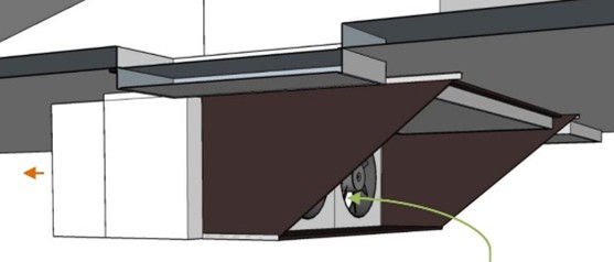 Above the fan a heating battery is placed to heat up the air to the desired temperature per row. It reduces the RH and the air can absorb the humidity from the product.