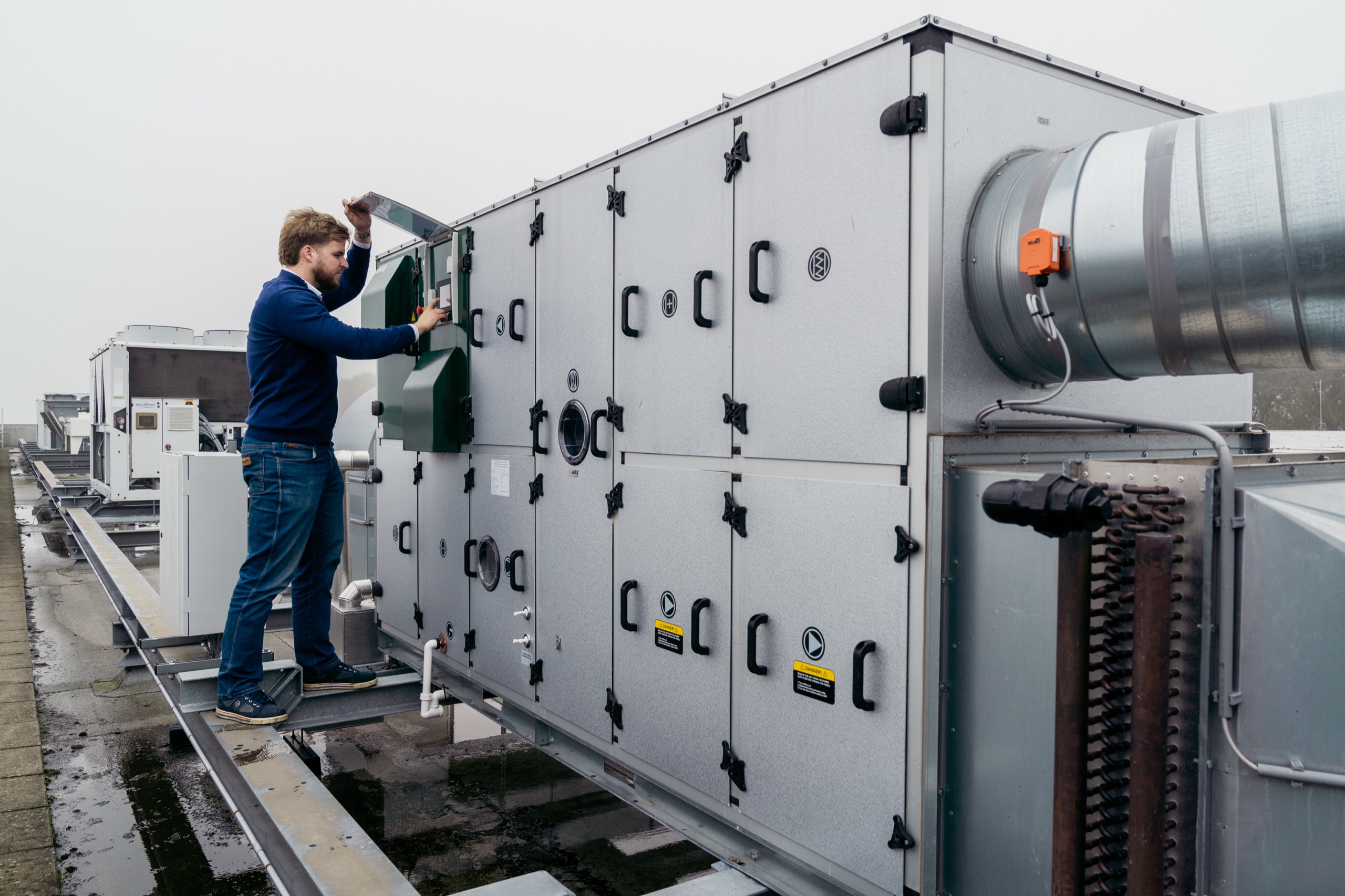 Het meten en regelen van de waarden van de ingaande lucht en de lucht uit het product.