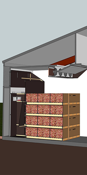 Bij het in-koelen van nog warme lelies kan optimaal gebruik worden gemaakt van koudere buitenlucht. De verdamper zuigt koude buitenlucht aan i.p.v. de warmere lucht uit de lelies.