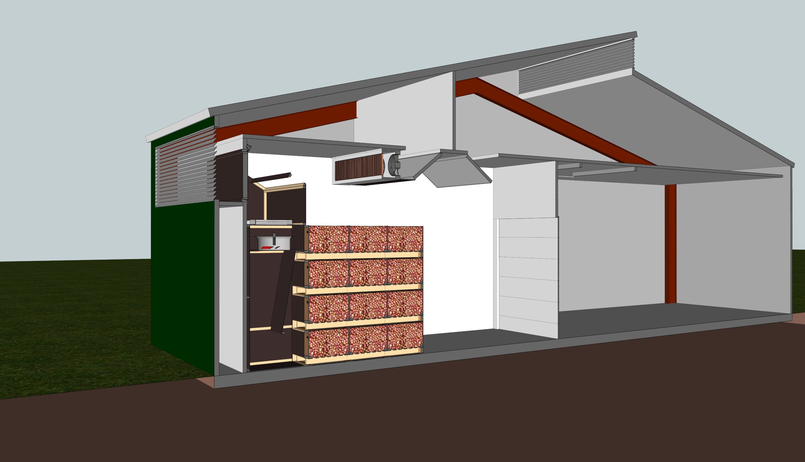 Geconditioneerd drogen geschiedt met gedroogde lucht. Daarom worden de kisten in een geïsoleerde ruimte geplaatst.