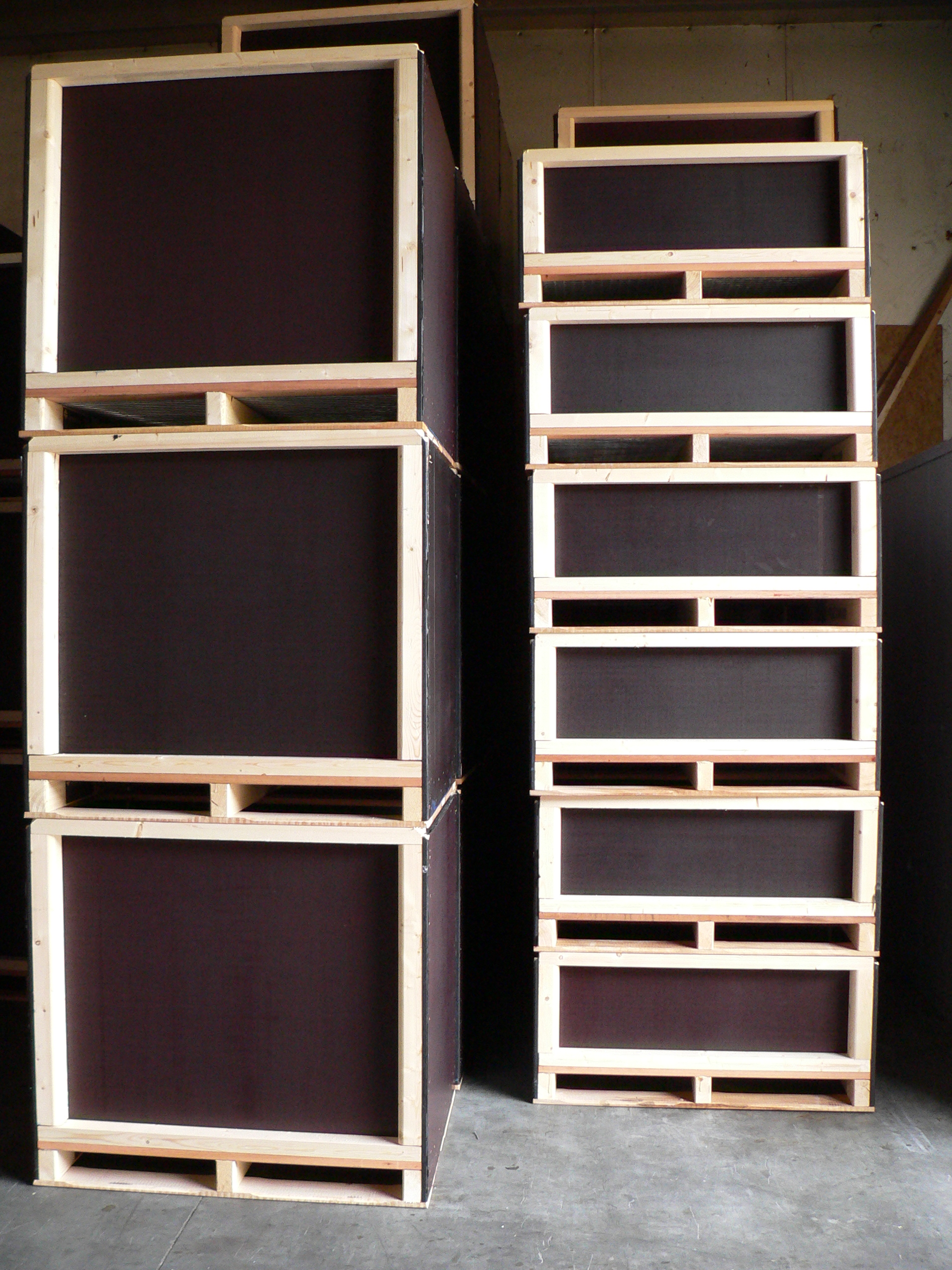 De kisten kunnen met de pallets naar boven worden gestapeld, wat ruimte bespaart.