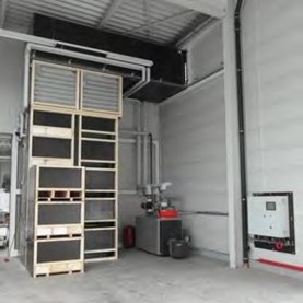 Geconditioneerd drogen geschiedt met gedroogde lucht. Daarom worden de kisten in een geïsoleerde ruimte geplaatst.